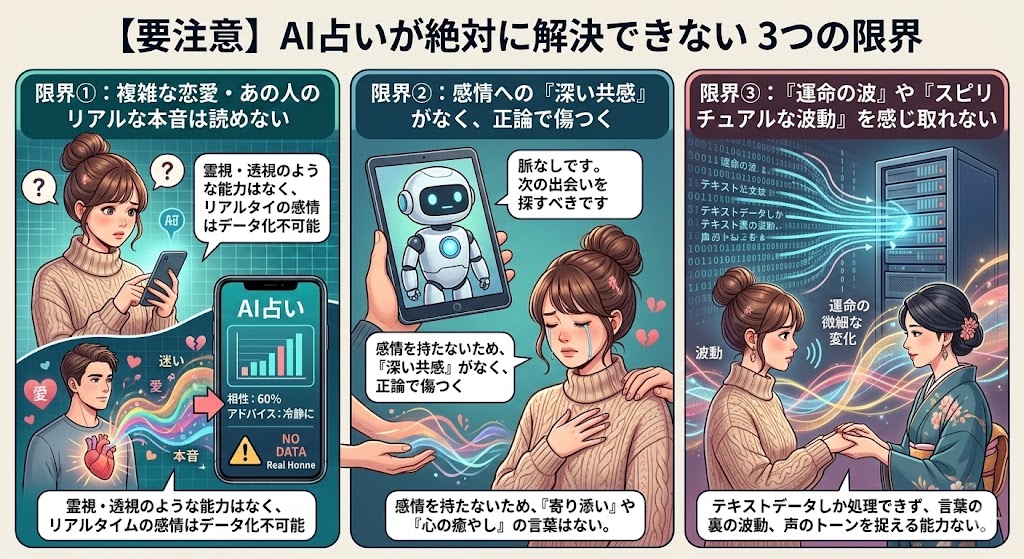 AI占いは、暇つぶしや手軽な運勢チェックツールとしては非常に便利で、ある程度「当たる」と感じるものです。
