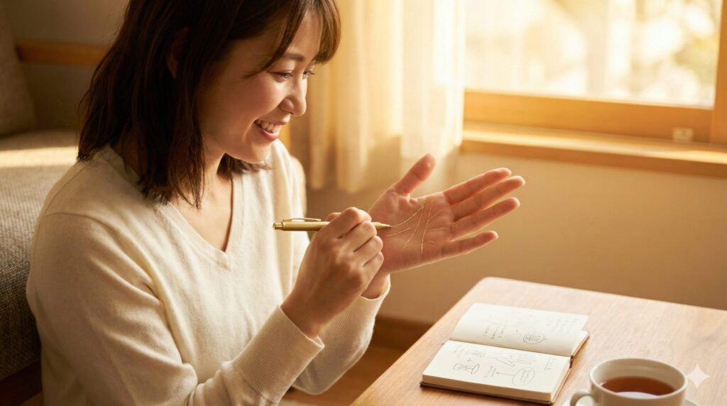そんなあなたは、今夜から「金色の水性ペン」を用意してください。やり方は簡単。「こうなりたい!」と強く念じながら、自分の手に理想の線を書き足すだけ。これ、ただのお絵かきじゃありません。手相は「脳の地図」とも言われます。