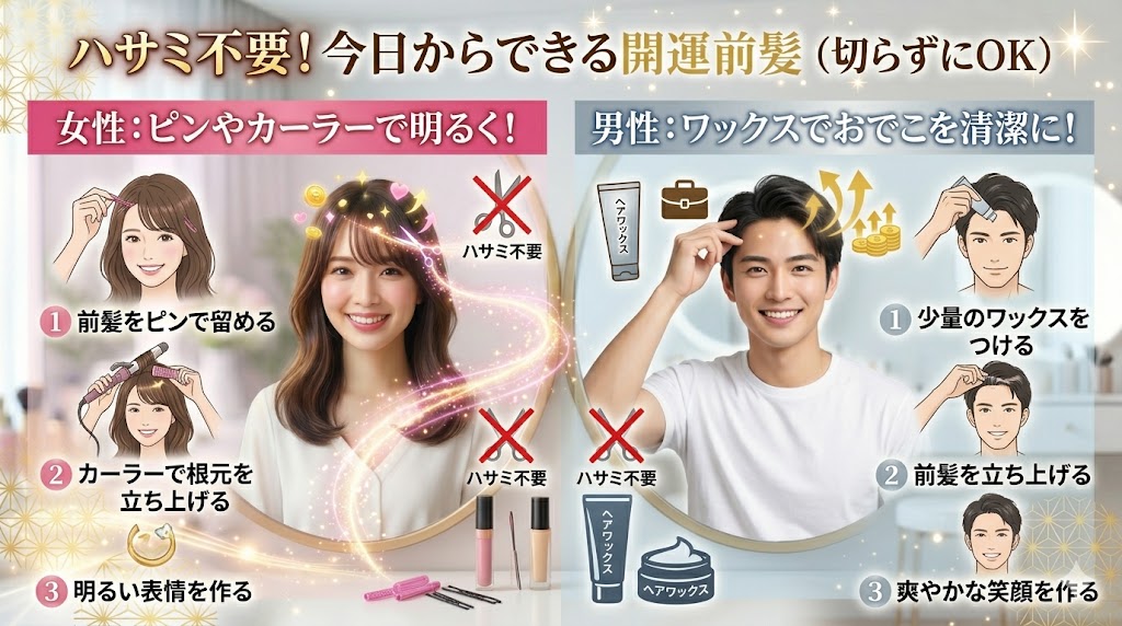 まずはこの記事を読み終えたら、洗面所の鏡の前に立ち、いつもと違う方向に前髪を流してみてください。おでこにスッと風が当たるのを感じた瞬間、あなたの新しい「開運ストーリー」が幕を開けます。