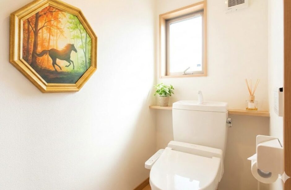 実はこれ、環境心理学の視点でも証明されていて、絵画が「仮想の窓」になることでストレスを減らしてくれる効果があるのです。リラックスできるトイレは、健康運にも直結しますよ♪